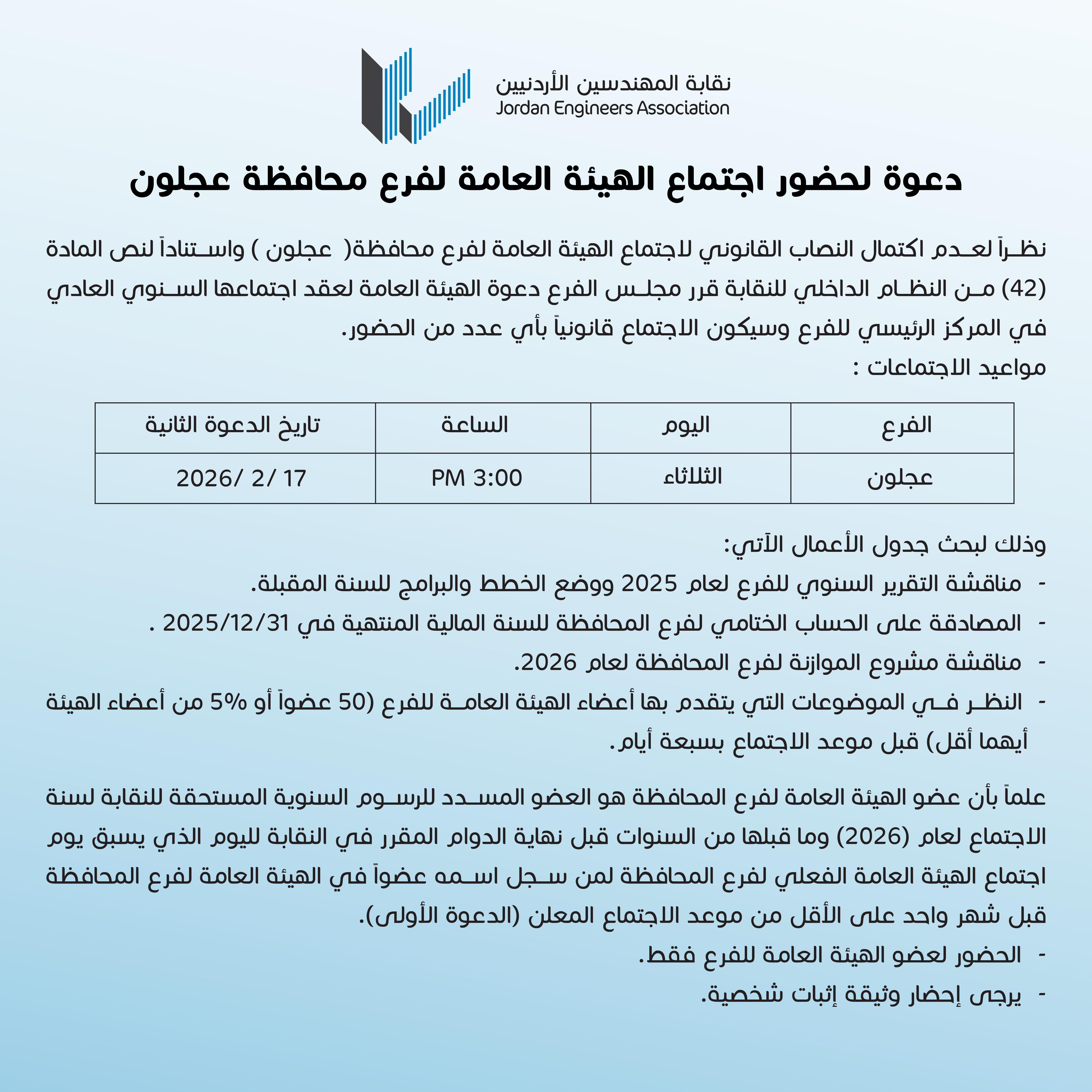 اعلان الدعوة الثانية لاجتماع الهيئة العامة لفرع مح...