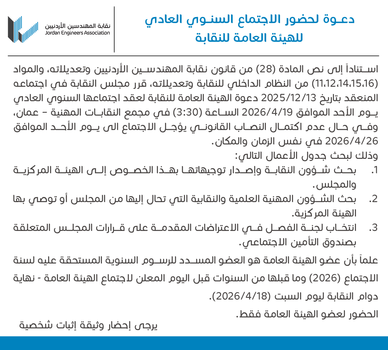 دعــوة لحضور الاجتماع السنــوي العادي للهيئة العام...