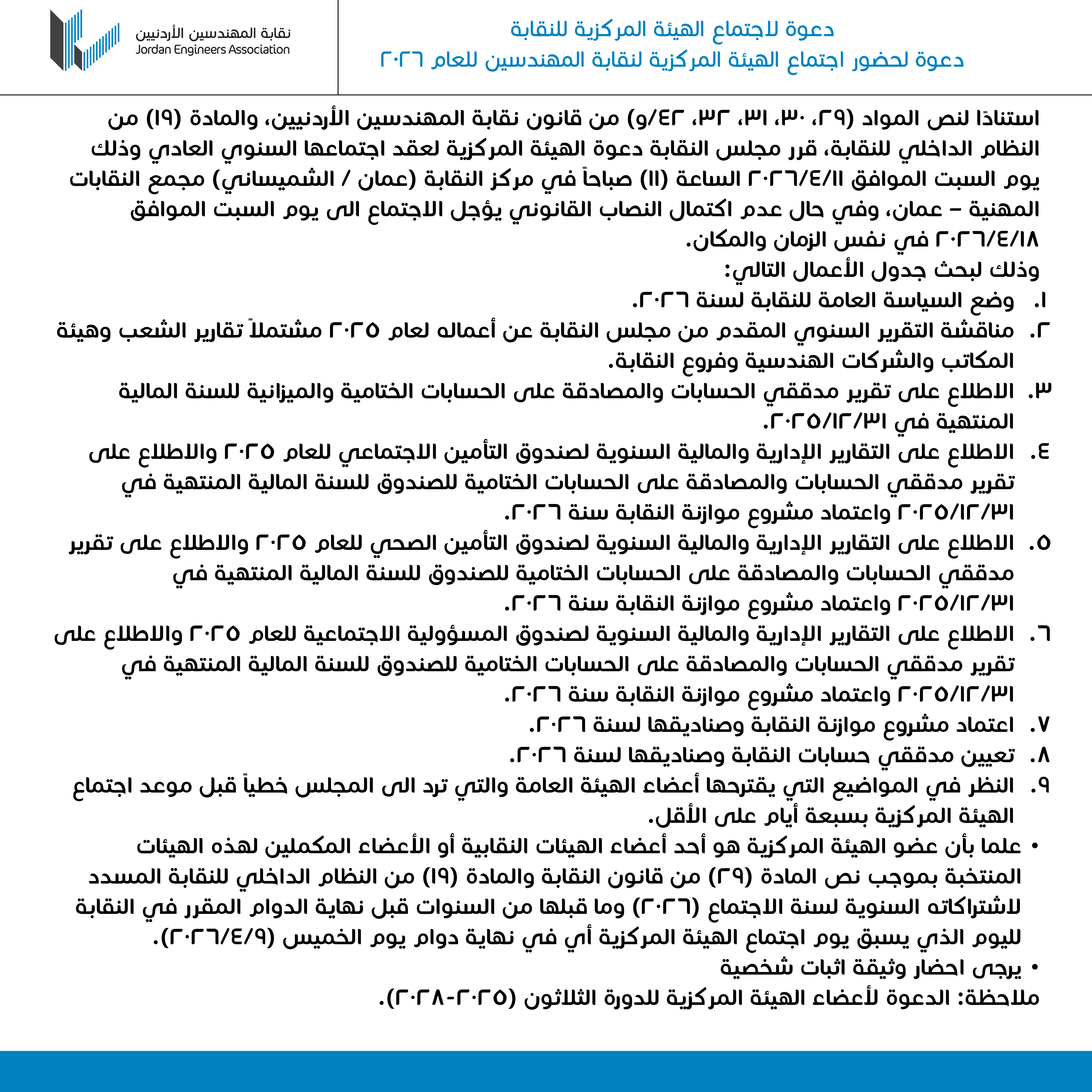 دعوة لحضور اجتماع الهيئة المركزية لنقابة المهندسين...