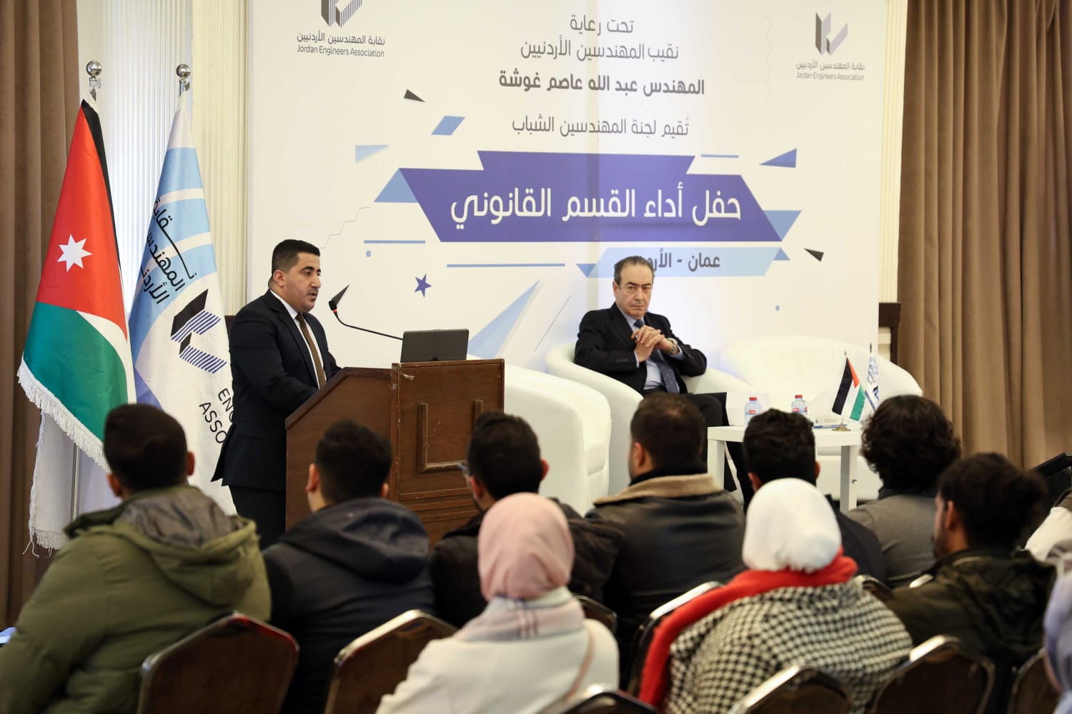 وردد المهندسين الجدد القسم القانوني، الذي تلاه عضو المجلس محمد الحباشنة، قبل أن يتسلموا بطاقات العضوية وشهاداتهم إيذانا بانطلاق رحلتهم المهنية تحت مظلة النقابة.